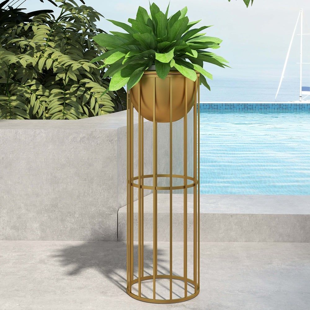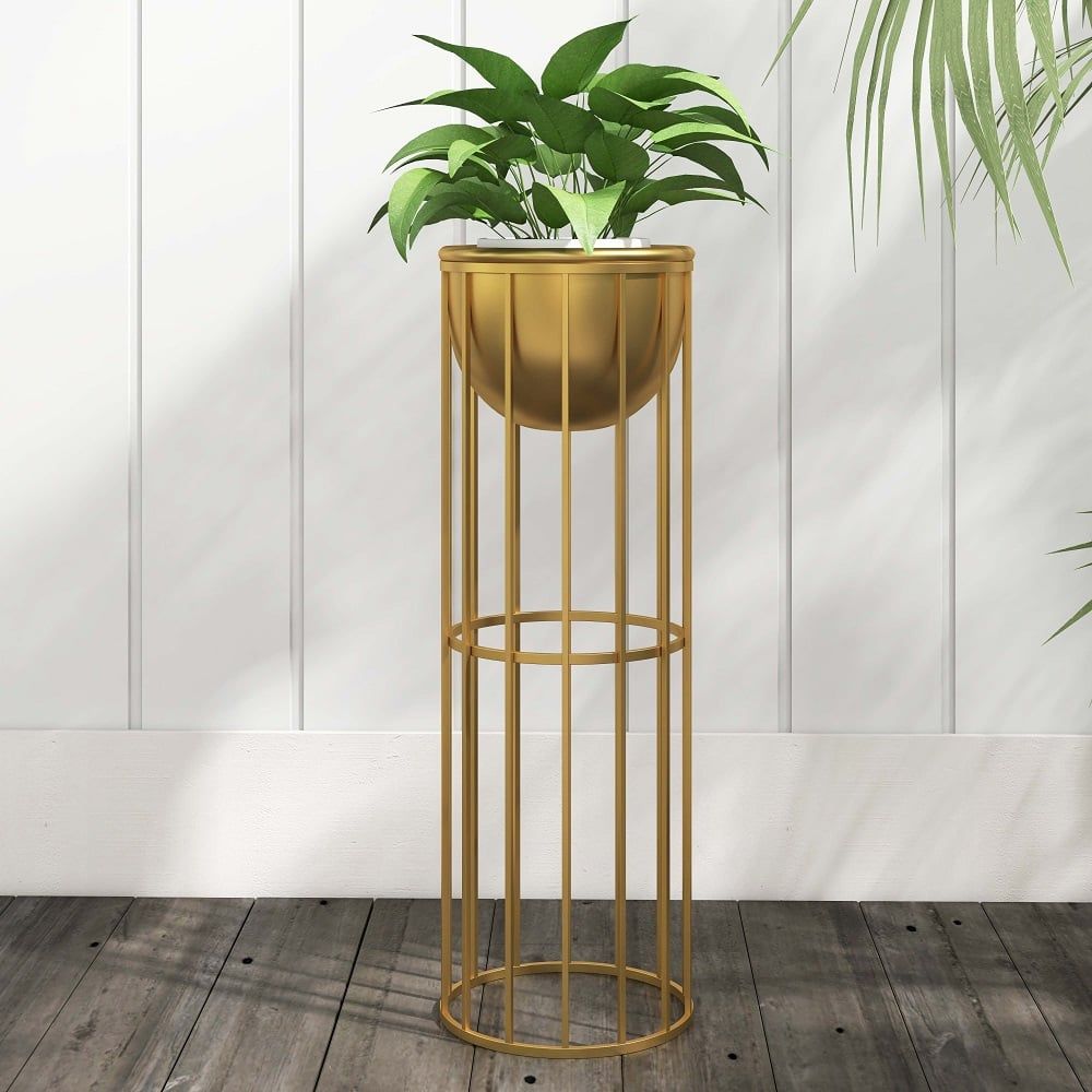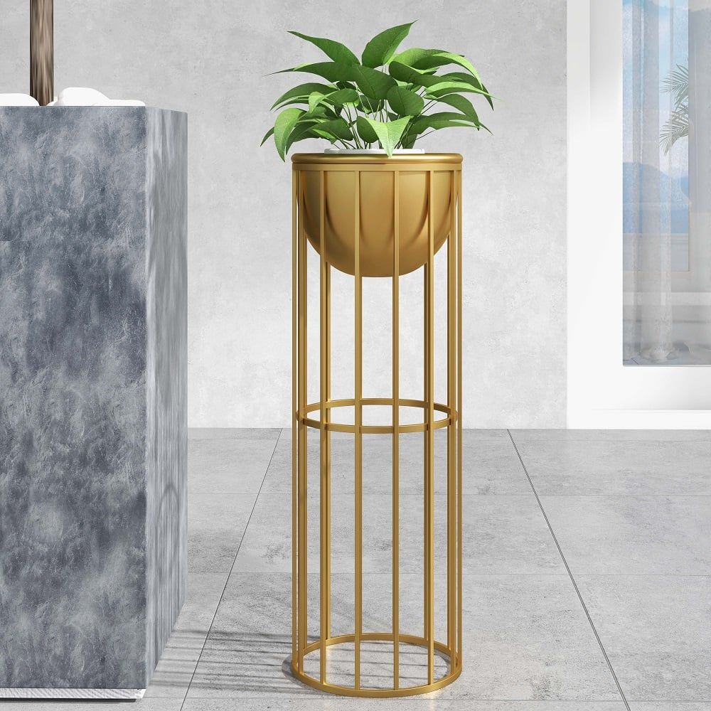 23.6" Gold Plant Pot Indoor Modern Metal Planter with Gold Stand – Stylish Large Floor Planter for Living Room Decor