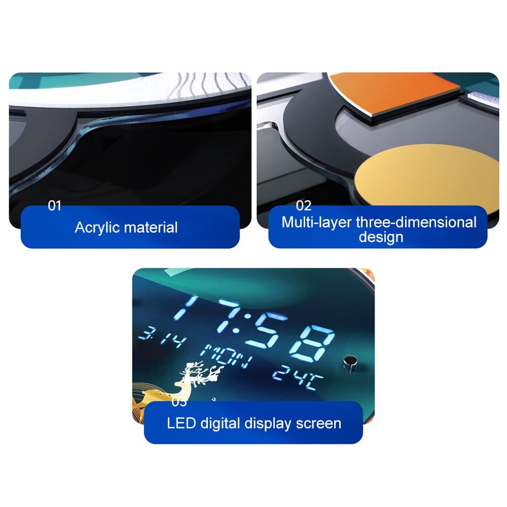 Built with silent, non-ticking operation, it is ideal for bedrooms, offices, libraries, studios, classrooms, or any quiet environment. Whether you're replacing an old wall clock or adding a modern decorative accent, this digital LED clock enhances your space with precision, clarity, and minimalist style.