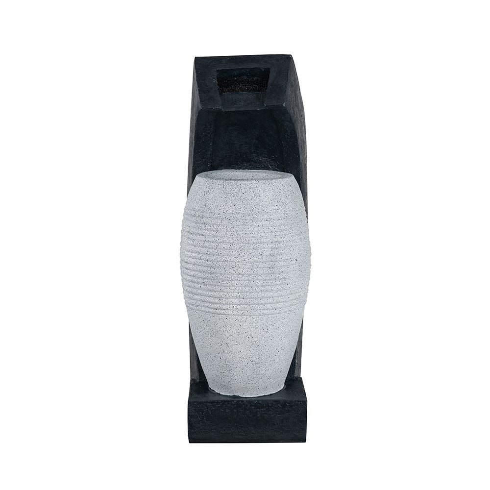Modern Polyresin Vase Water Fountain – Black & White Indoor/Outdoor Fountain with LED Light