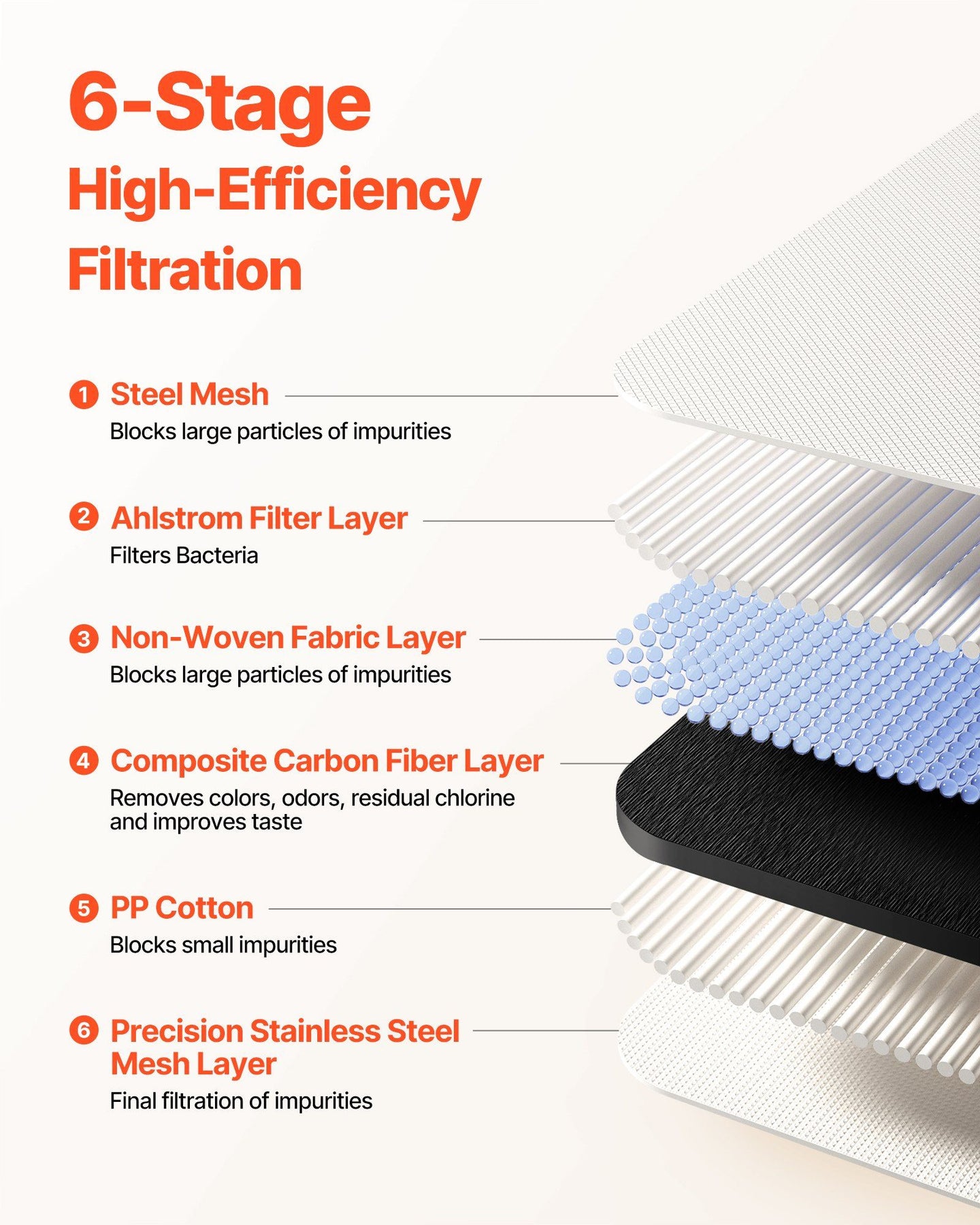 Equipped with carbon fiber and high-quality filter, the skincare sink filter removes 95% of chlorine and chloramine and effectively filters out impurities as small as 0.01 microns.